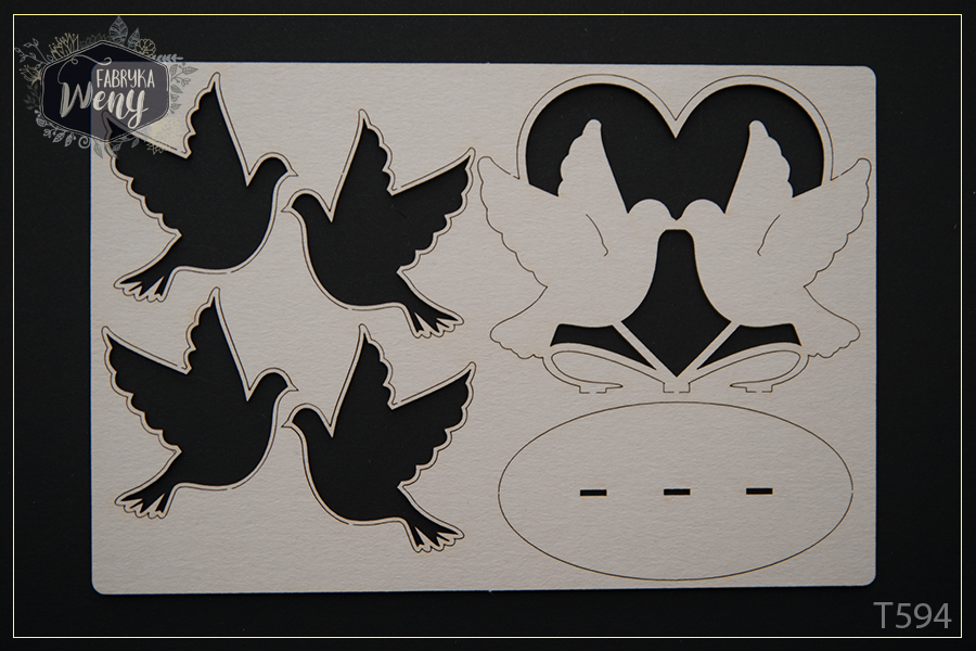 Tekturka 3D -T594- gołąbki w sercu z podstawką - idealne do boxa!