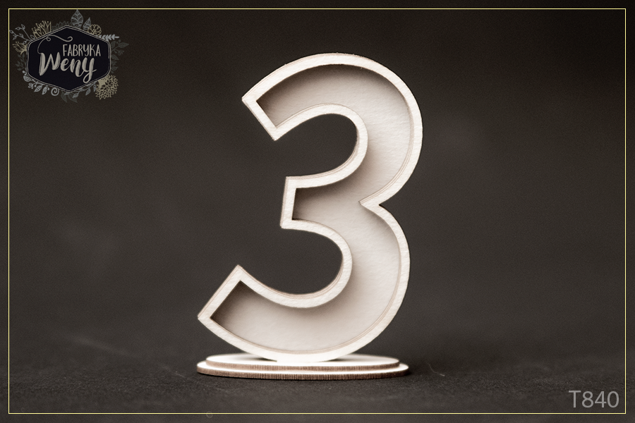 Ozdobny element wycięty z lekkiej tektury o grubości 1-1,2 mm. – shaker box 3D - cyfra - 3 - trzy - trójka