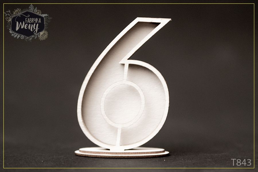 Ozdobny element wycięty z lekkiej tektury o grubości 1-1,2 mm. – shaker box 3D - cyfra - 6 - sześć - szóstka