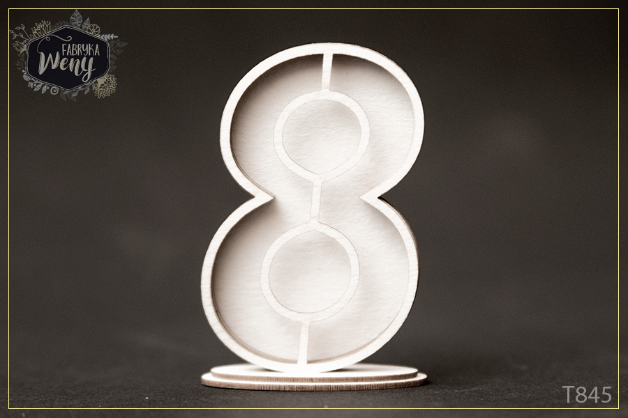 Ozdobny element wycięty z lekkiej tektury o grubości 1-1,2 mm. – shaker box 3D - cyfra - 8 - osiem - ósemka