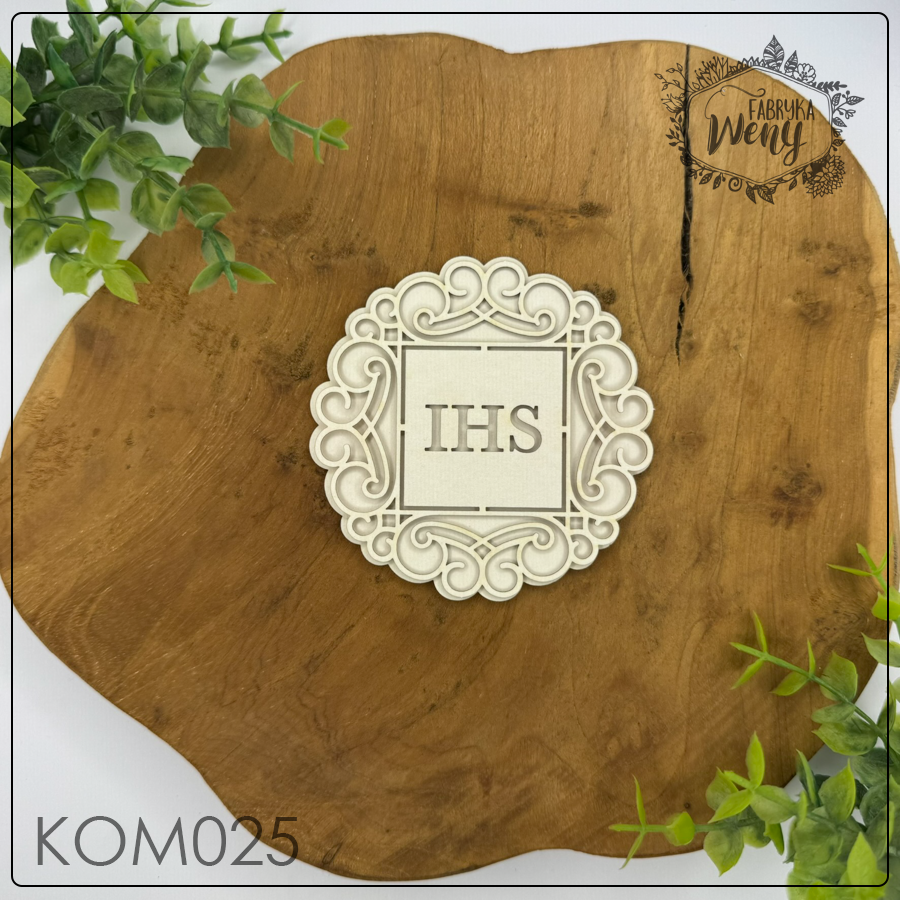 Ozdobne elementy tekturowe wycięte z lekkiej tektury o grubości 1-1,2 mm. – hostia ażurowa 2D / IHS w ramce / hostia / IHS / Pierwsza Komunia Święta