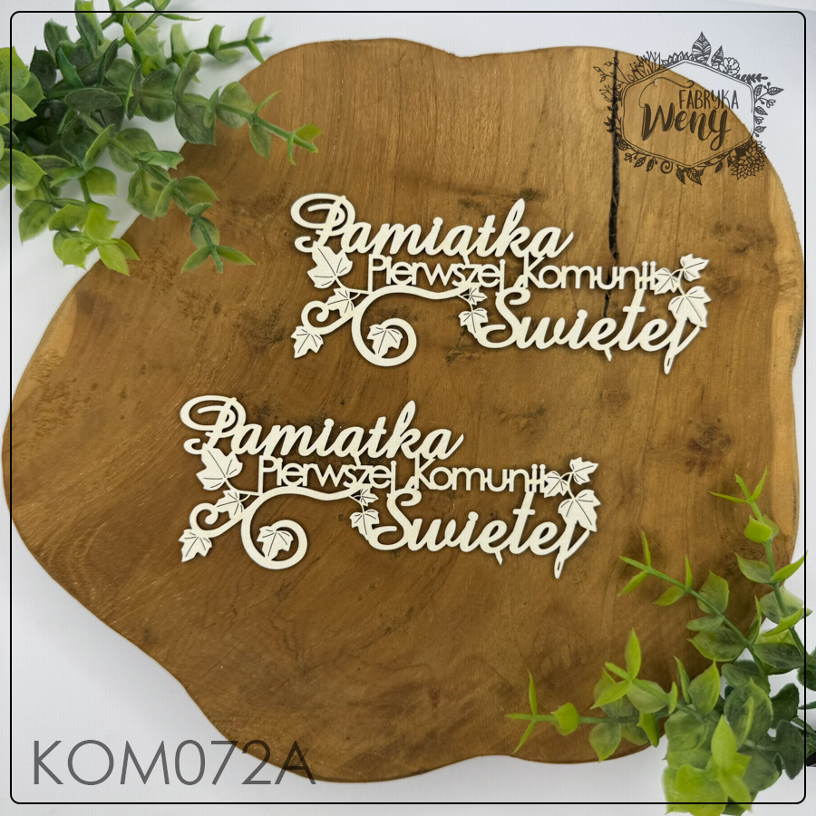 Ozdobne elementy tekturowe wycięte z lekkiej tektury o grubości 1-1,2 mm. – cytat / napis / "Pamiątka Pierwszej Komunii Świętej" - 2 SZTUKI