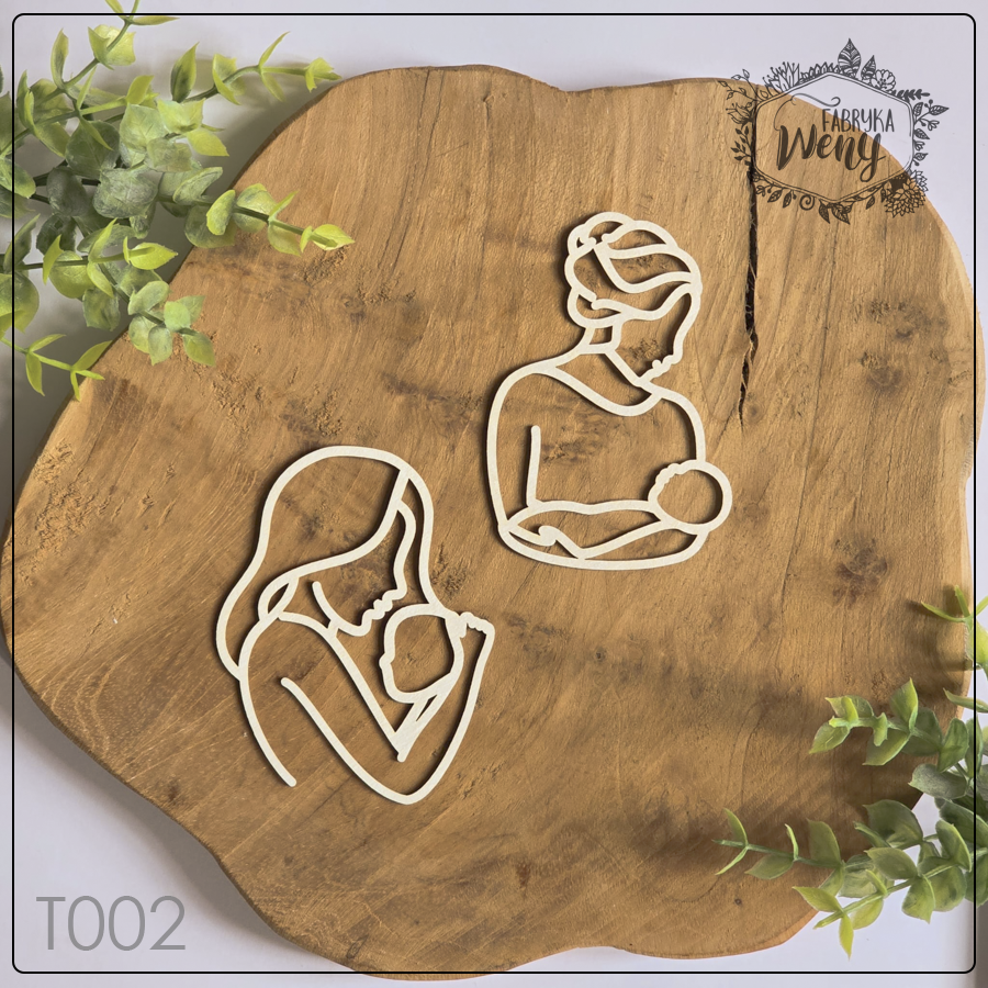 Ozdobne elementy wycięte z lekkiej tektury o grubości 1 - 1,2 mm. – postaci matki z dzieckiem - 2 sztuki - / mama / matka / dziecko / bobas