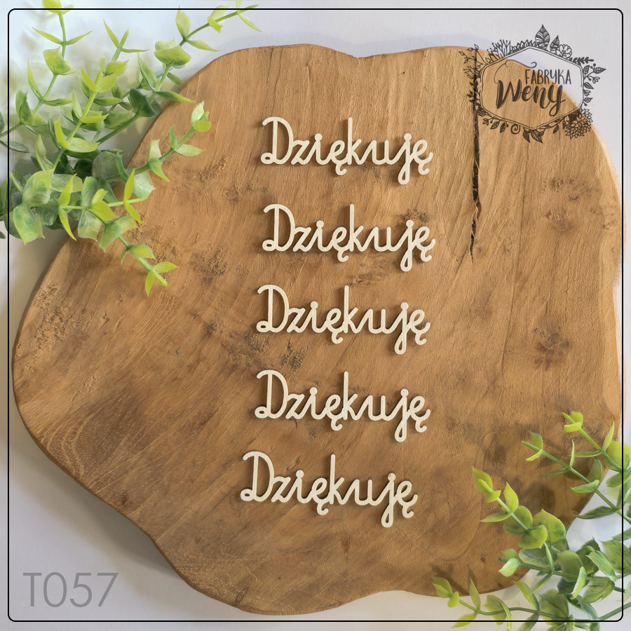 Ozdobne elementy tekturowe wycięte z lekkiej tektury o grubości 1,2 mm. – napis Dziękuję - w zestawie 5 szt