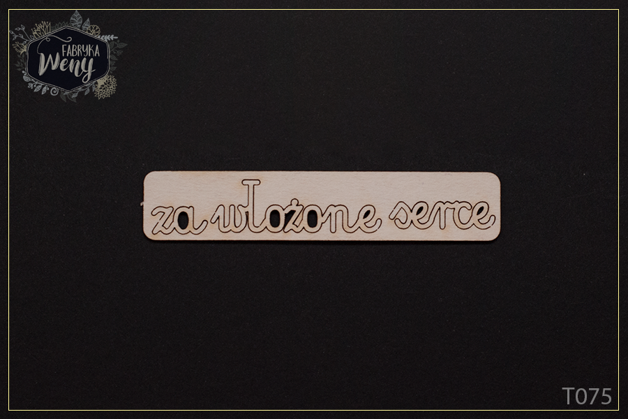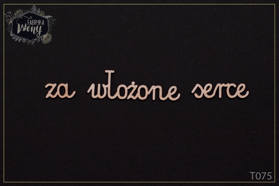 Ozdobne elementy tekturowe wycięte z lekkiej tektury o grubości 1,2 mm. – napis - za włożone serce
