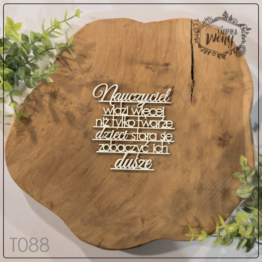 Ozdobny element wycięty z lekkiej tektury o grubości 1-1,2 mm. - Cytat "Nauczyciel widzi więcej niż tylko twarze dzieci - stara się zobaczyć ich dusze"