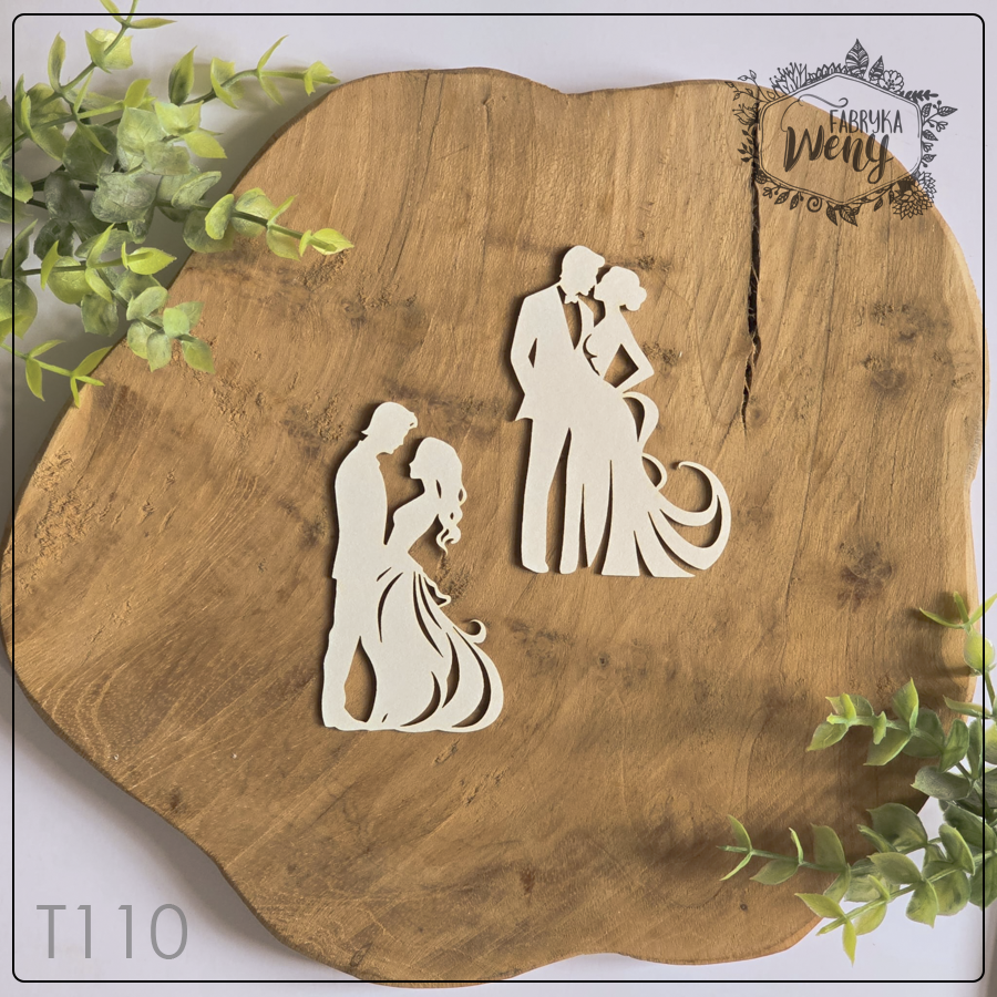 Ozdobny element wycięty z lekkiej tektury o grubości 1-1,2 mm. – para młoda - zestaw 2 szt na arkuszu - ślub / miłość / nowożeńcy / wedding / marriage / małżeństwo