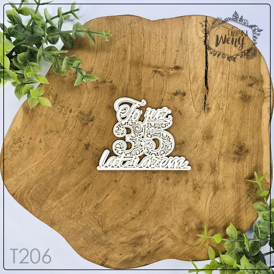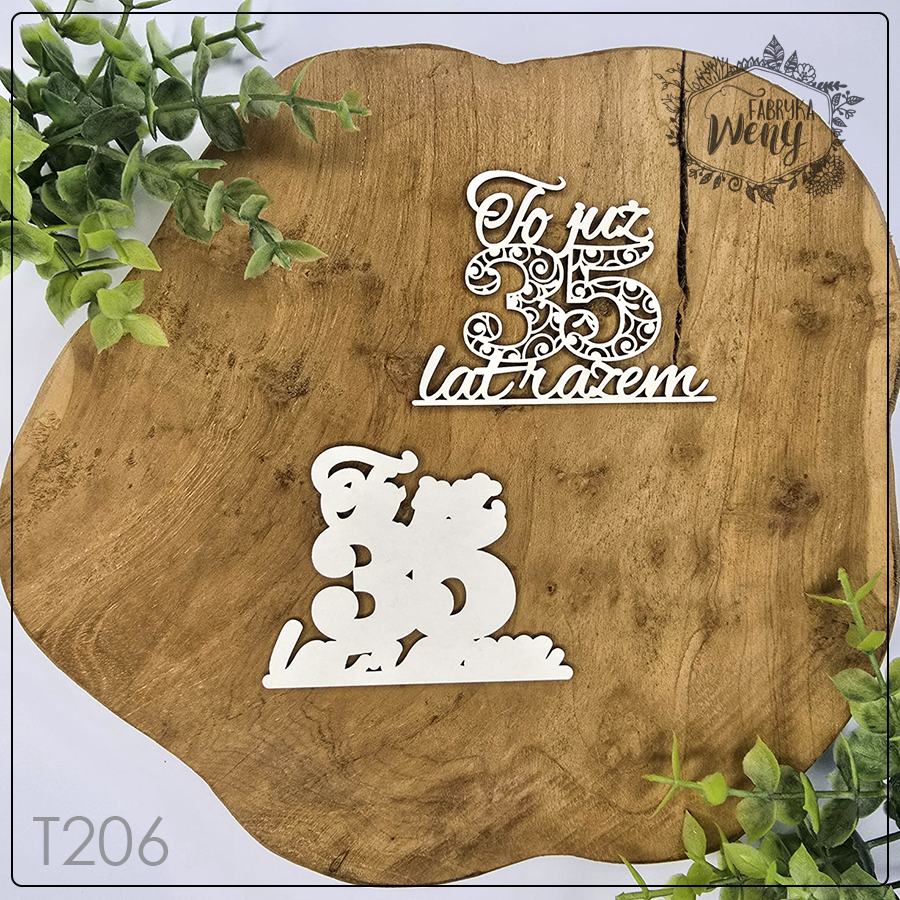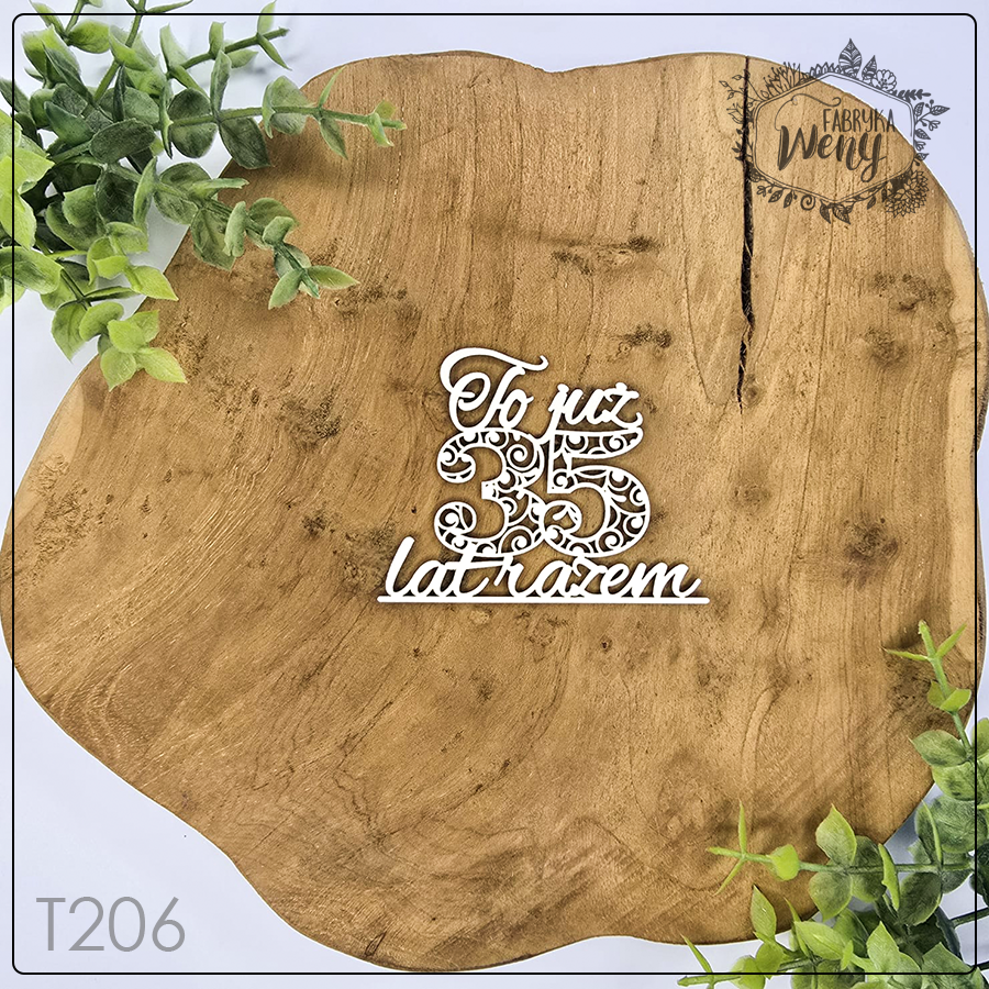Ozdobny element tekturowy wycięty z lekkiej tektury o grubości 1,2 mm. – ażurowy warstwowy napis "To już 35 lat razem" - rocznica ślubu / ślub / miłość / małżeństwo