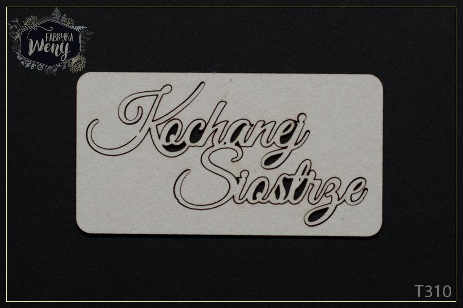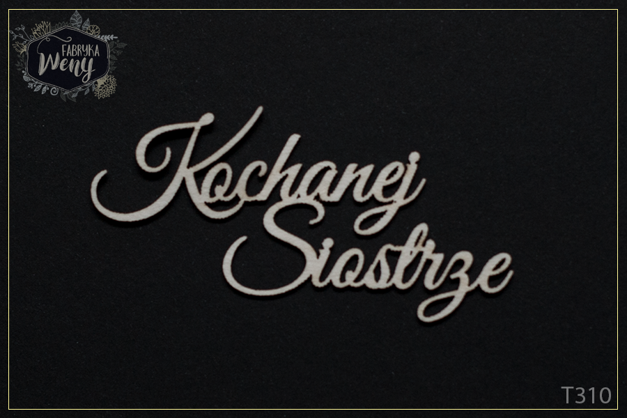 Ozdobny element wycięty z lekkiej tektury o grubości 1,2 mm. – napis Kochanej Siostrze