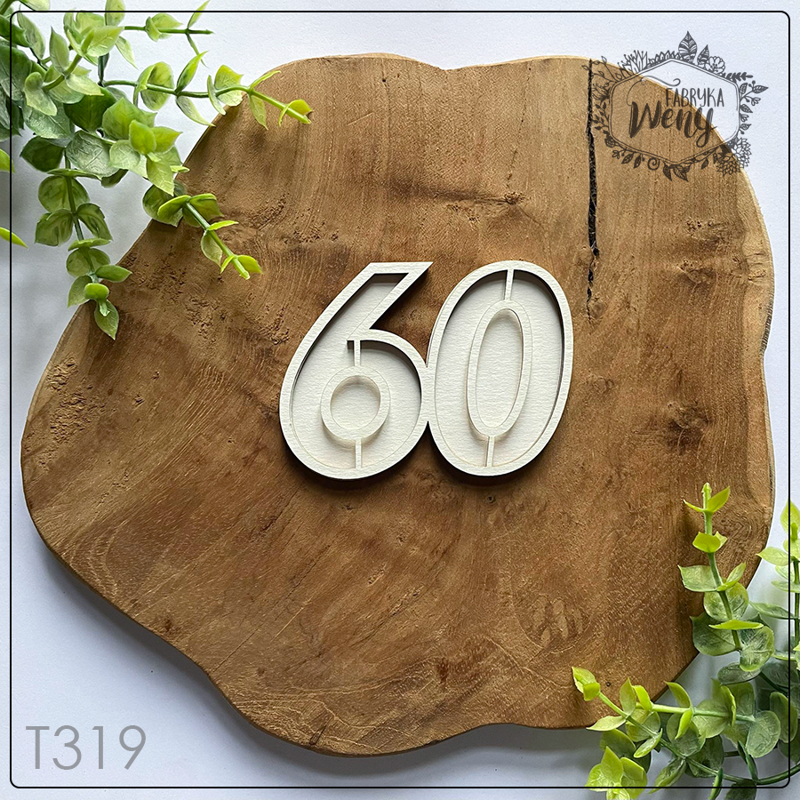 Ozdobny element wycięty z lekkiej tektury o grubości 1-1,2 mm. – shaker box - cyfra - 60 - sześćdziesiąt - sześćdziesiątka