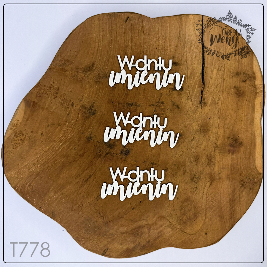 Ozdobne elementy wycięte z lekkiej tektury o grubości 1-1,2 mm. – zestaw napisów / napis / napisy "W dniu imienin" - 3 sztuki