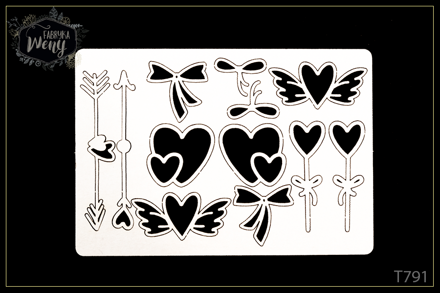 Tekturka -T791- miłosny zestaw - serduszka / strzałki / kokardki