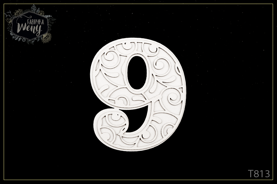 Ozdobny element wycięty z lekkiej tektury o grubości 1-1,2 mm. – warstwowa ażurowa cyfra - 9 - dziewięć - dziewiątka