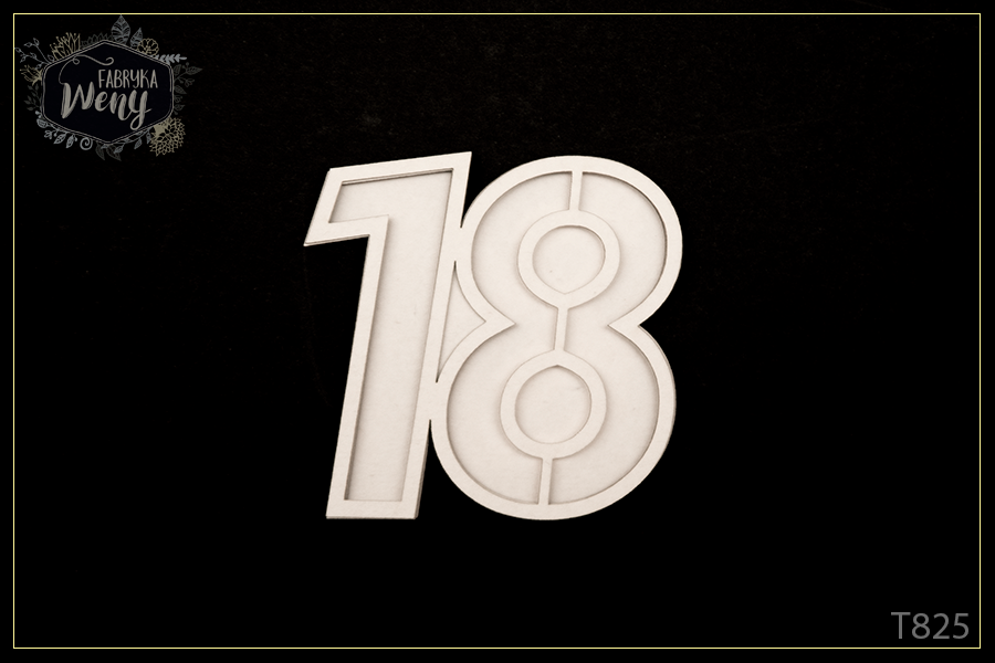 Ozdobny element wycięty z lekkiej tektury o grubości 1-1,2 mm. – shaker box - cyfra - 18 - osiemnaście